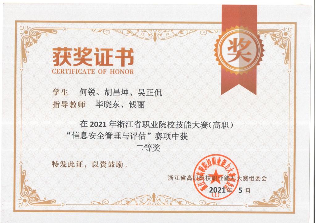 2021年浙江省职业院校校技能大赛(高职)“信息安全管理与评估”二等奖