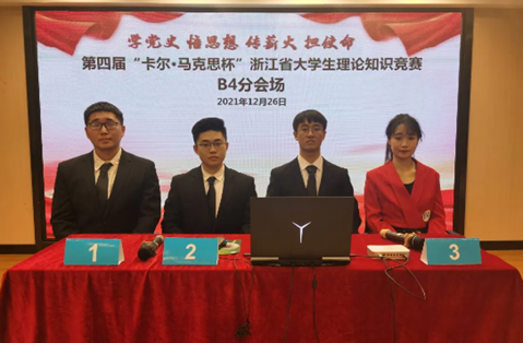 近日,我校在第四届“卡尔·马克思杯”浙江省大学生理论知识竞赛决赛中表现优异,蝉联一等奖。我院陈焕敏同学和其他学院三位选手组成代表队参赛。