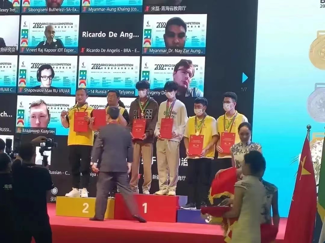 11月1日至7日,在厦门市国际会展中心举行的2022金砖国家职业技能大赛“IT网络系统管理”赛项决赛中,数字信息技术学院邱银杰、陈信宇(指导教师:毕晓东)以第一名成绩获得国赛一等奖,随后在与俄罗斯、巴西、印度、南非、白俄罗斯等国际参赛队的综合排名中再次以第一名获得国际赛金牌。指导教师获得优秀专家证书。