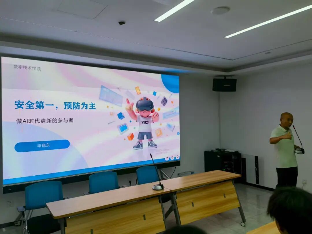 为响应国家网络安全宣传周活动,提升学生网络安全意识,筑牢网络安全防线,9月15日,数字技术学院毕晓东副院长在分院大会议室,为全院60余名学生代表带来一场精彩的网络安全周讲座。