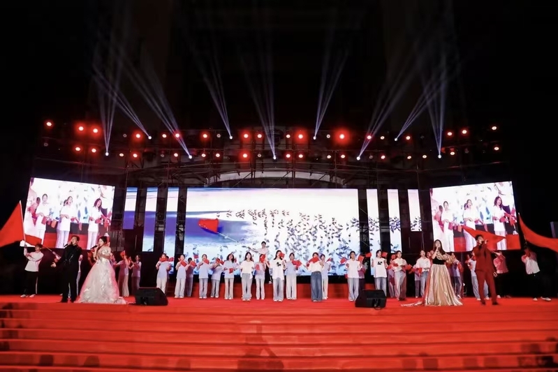 典礼上,我院选送的节目精彩呈现 ——2024级同学与 2025级新生共同演绎《我爱你中国》,在抗战胜利 80周年与国庆前夕,用青春之声为祖国庆生,现场气氛达到高潮。