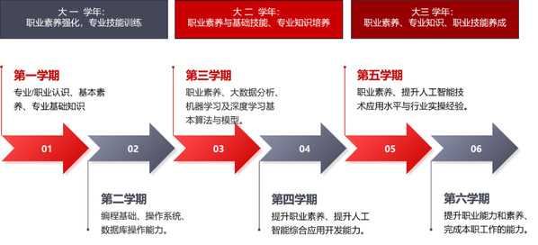 本专业对接浙江及长三角地区战略性主导和新兴人工智能产业中重点领域的人才需求,培养与社会主义现代化建设要求相适应的,具有良好的职业道德、文化素养、创新精神、工匠精神、创业能力和综合职业能力,具备人工智能技术的系统集成、运维、数据处理、分析等能力的德智体美劳全面发展的复合型高技能人才