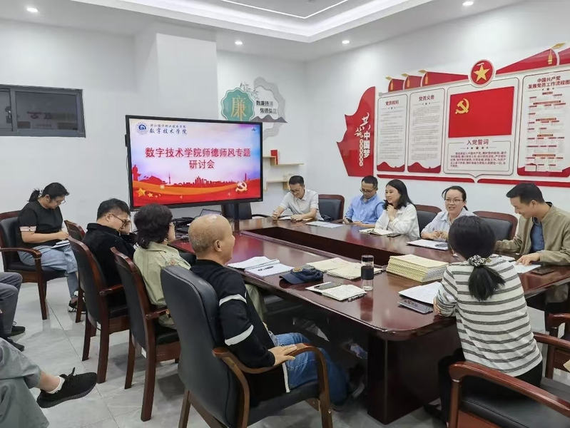 为深入贯彻落实立德树人根本任务,大力弘扬教育家精神,切实加强学院教师队伍思想政治素养和职业道德水平建设。10月20日,数字技术学院召开师德师风专题研讨会,结合新学期初的教学督导和学风巡察情况,共同探讨新时代数字技术领域教育工作者的师德内涵与育人使命。学院领导班子、全体主管、教学督导、教学秘书参加会议。