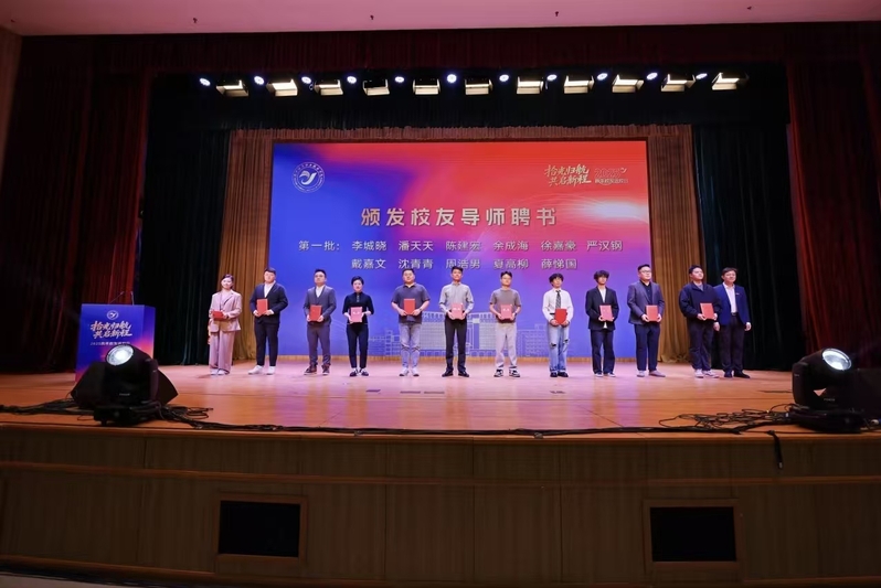 大会上,学校领导为数字技术学院新成立的校友分会授旗,会长夏高柳校友从校领导手中接过旗帜,也接过了凝聚校友、共谋发展的责任。同时,夏高柳、薛悌国、王春锋、杨威四位校友被授予第九批“校友导师”称号,将继续传承学校校友导学育人的优良传统。