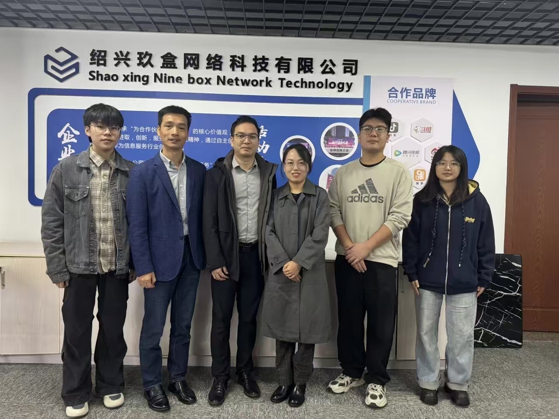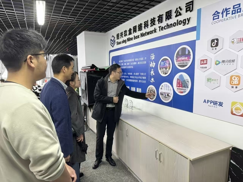 王富军对学校一行的到访表示热烈欢迎,并深切表达了对母校教育和培养的感激之情。随后,他带领老师们参观了公司,并详细介绍了绍兴玖盒网络科技有限公司的发展情况。