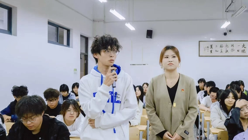 在问答环节,现场气氛活跃,同学们争相提问。针对“如何平衡学业与工作压力”这一常见困惑,孙瑜程结合自身经历,分享了具体的时间管理方法,并强调“学生干部的第一要务是学好专业课程,以优异的学业成绩立身”。当被问及“如何提升团队凝聚力”时,她强调了“真诚沟通”与“共同目标”的重要性,建议通过有意义的团建活动和清晰的任务愿景来凝聚人心。孙瑜程也向在场的同学提问,引导大家思考担任学生干部的初心。这一问一答间,不仅是经验的传递,更是一种服务精神与责任担当的薪火相传。