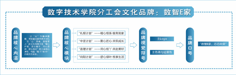 “数智E家,芯芯向荣”——“芯”既呼应数字技术的芯片内核,又谐音“欣欣向荣”,寓意工会品牌如大树般蓬勃生长,教职工在“数智E家”的滋养下实现职业与生活的双重丰收。