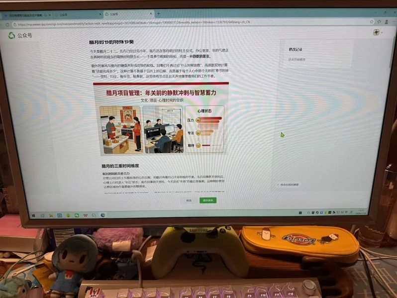 一边是电脑上编排公众号的推文,用文字传递喜庆与祝福;一边是在线当客服,为屏幕那端的用户送上新年问候、解答问题。虽然忙碌,但能将“新年快乐”、“马年大吉”的祝福通过我的工作传递出去,感觉特别有意义。