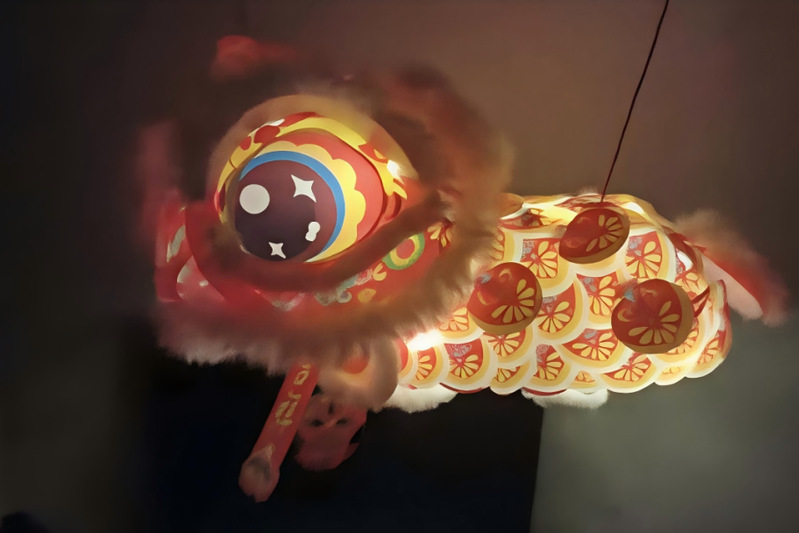 暖黄的光从镂空的纸层里透出来,将狮头的眉眼映得格外灵动。斑斓的狮身缀着精致的花纹,毛茸茸的边缘裹着暖意,像一只憨态可掬的小兽,守着新年的欢喜。这盏灯笼,承载着中国传统文化和制作者的心血,是传统文化和现代工艺的结合,是中式浪漫的极致,是对新年的祈愿,也是对美好的向往。愿这盏暖灯,能照亮你每一个平凡的日子,新的一年,如醒狮般昂扬,意气风发,万事顺遂。