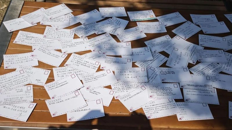 线下的活动设置在食堂门口的活动展台前,围满了热情高涨的同学。在志愿者们的引导下,大家在明信片上挥洒创意。有的同学用彩笔描绘出可爱的卡通形象和绚丽的校园一角,有的同学则用工整的笔迹写下真挚的鼓励与祝福。“愿你眼中有光,心中有爱”、“好好学习,我们在大学等你”——一句句朴实的话语,一张张精美的DIY明信片,不仅是艺术的创作,更是心与心的对话。
