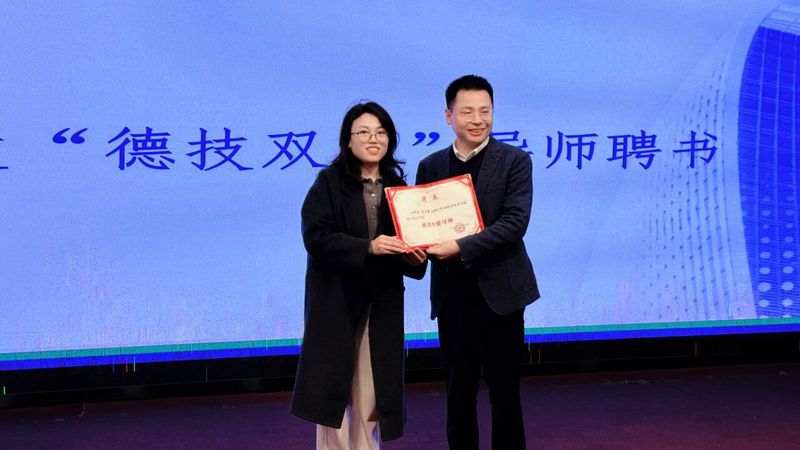 活动现场,党总支书记肖紫嫣代表学院为汪小勇先生颁发“德技双馨”导师聘书,为讲座拉开了序幕。